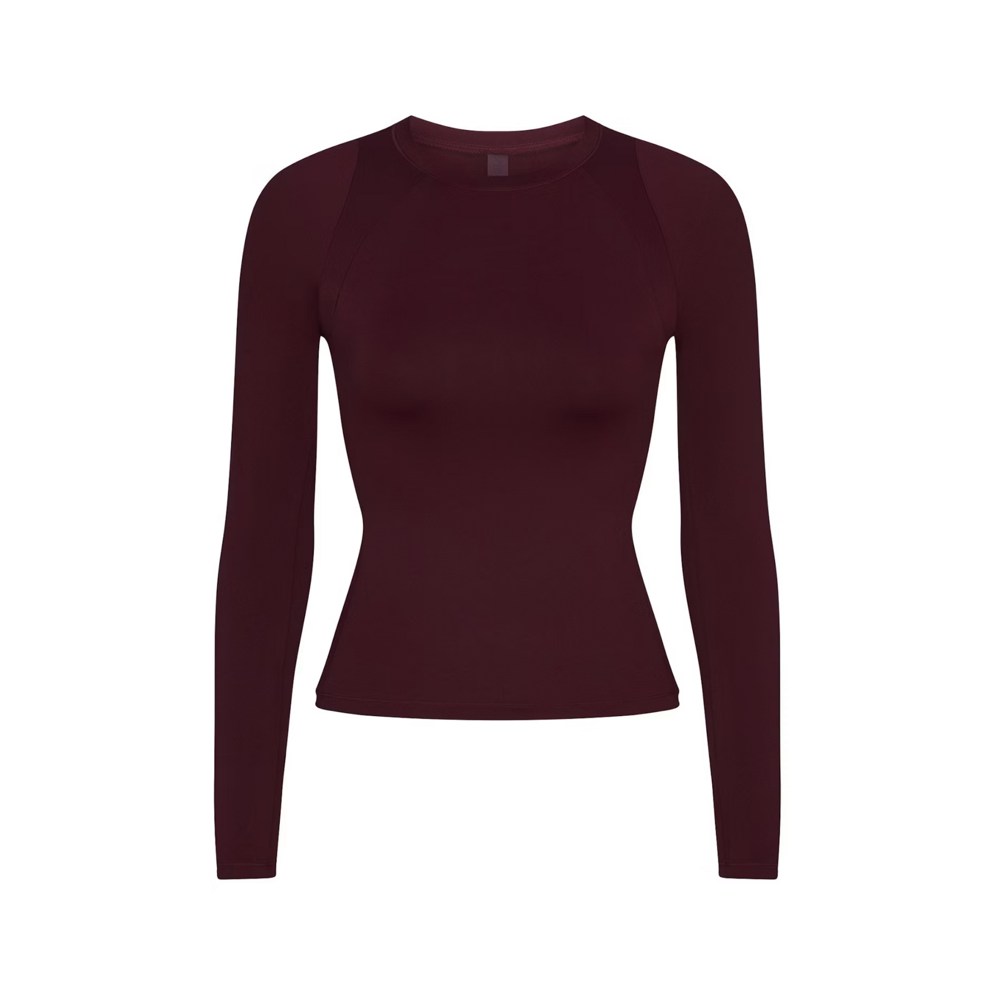 - Crew neck, Long sleeves, Front side and back seam details, Silicone matte logo at center back neck, Fits tight to body