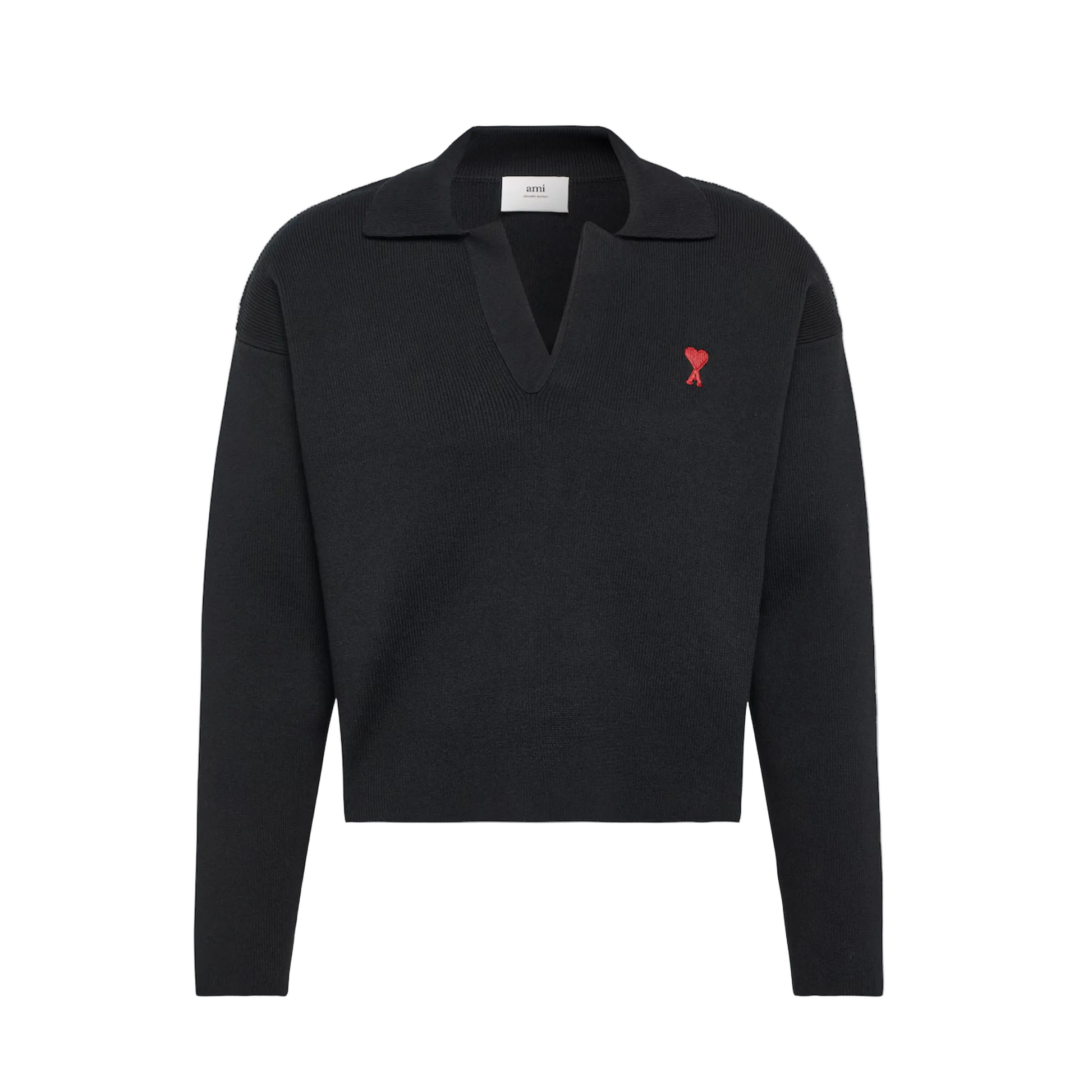 AMI Paris Heart Logo Knitted Polo Sweater Black
