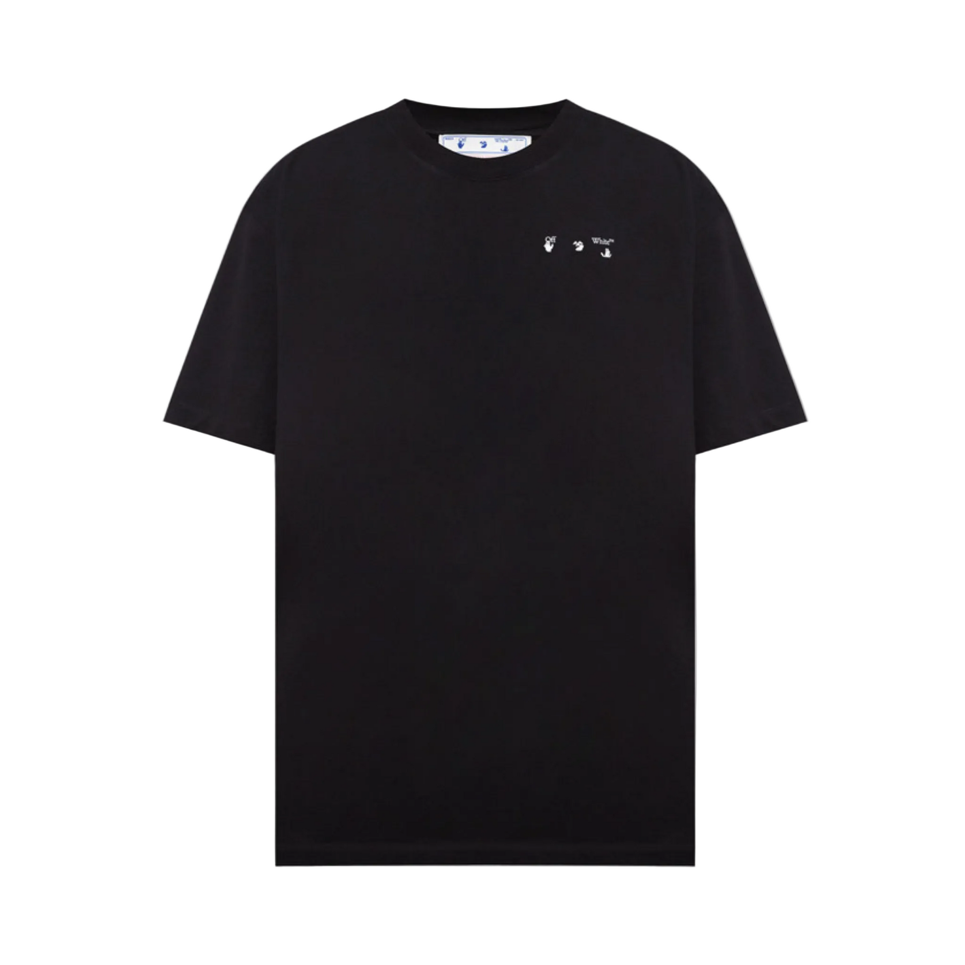 The bold printed graphic adds depth and contrast against the black base, creating a striking visual while staying versatile and easy to style. Finished with a classic crewneck and short sleeves, this tee perfectly reflects Off-White’s fusion of art, luxury, and urban culture.